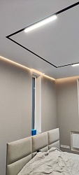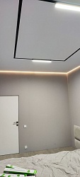 - Эстетичность. Плёночные и тканевые потолочные системы выглядят очень эффектно, особенно при сочетании с правильно подобранным освещением или светодиодной подсветкой.